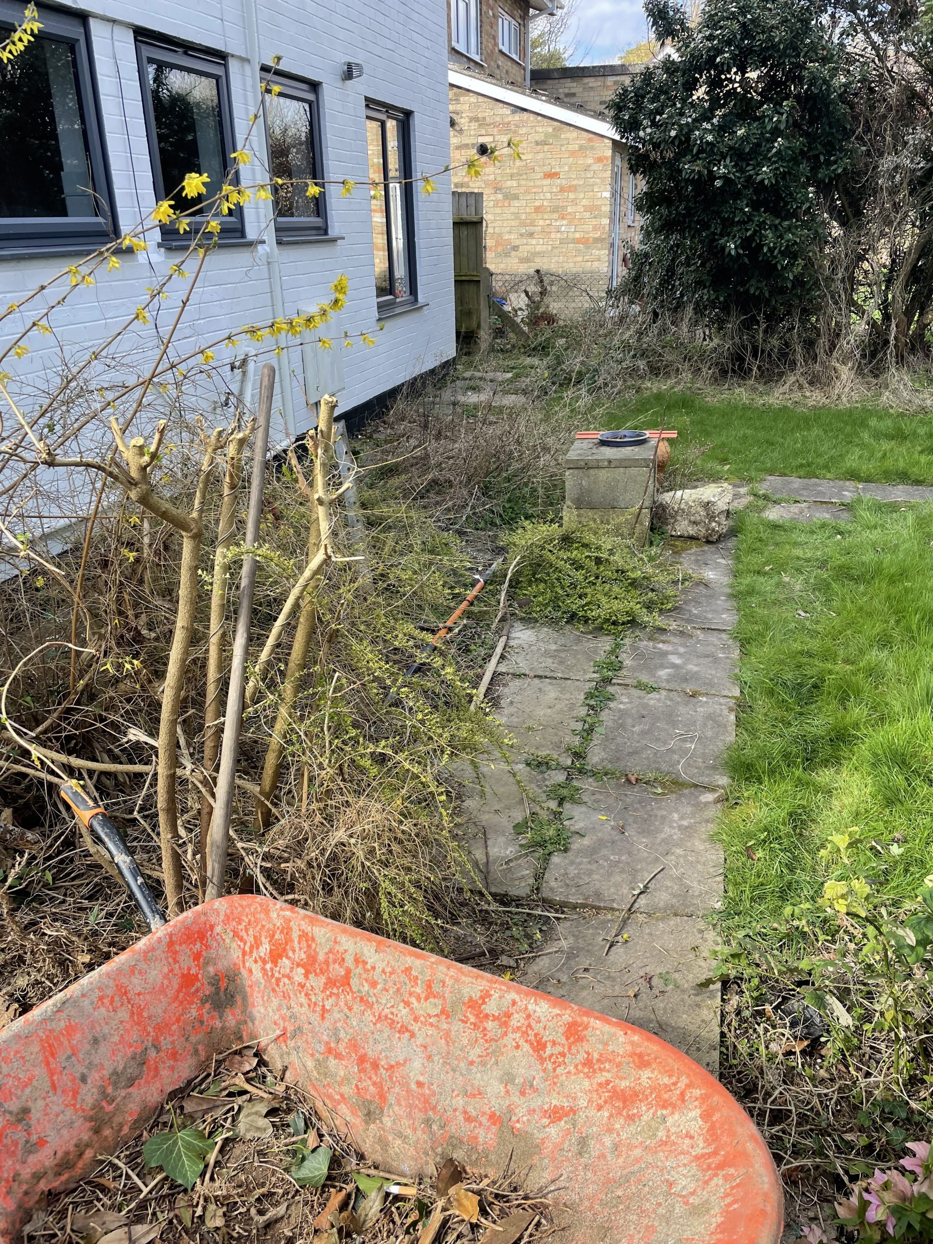 I had been unhappy with the jungle at the bottom of my garden. Dead trees, overgrown shrubs and creepers were beyond me. In a matter of six days, Nathan had cleared the spot, erected a smart new fence and planted new conifers. I’m very pleased with the result.
